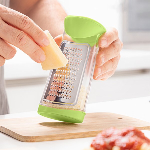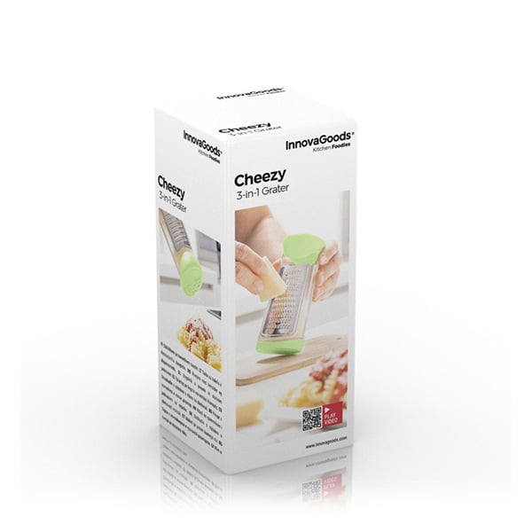 Pomaga vam pri kuhanju na enostaven in zabaven način, saj vam ponuja najboljše novosti za vašo kuhinjo, strgalnik 3 v 1 cheezy s posodo in pokrovom razpršilnika!